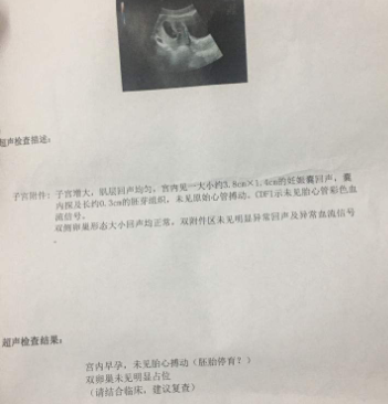 因为上次胎停的原因,这次怀孕我格外小心,饮食、运动都严格按照医生的建议。第6周去医院做B超查胎心胎芽,没想到又是一样的结果——无胎心胎芽。听到医生说完这句话,我在B超室就哭了,医生看我那么难过安慰我说“要是实在不死心,就50天左右再来一次吧,可能会有转机,当然,可能性比较小。”听到医生的话,我自动把他理解成现在周数还小,还测不到胎心胎芽,晚几天,晚几天肯定就有了!但是事实证明,老天并没有让我如愿以偿,50天检查,仍旧没有胎心胎芽,我又一次经历流产。