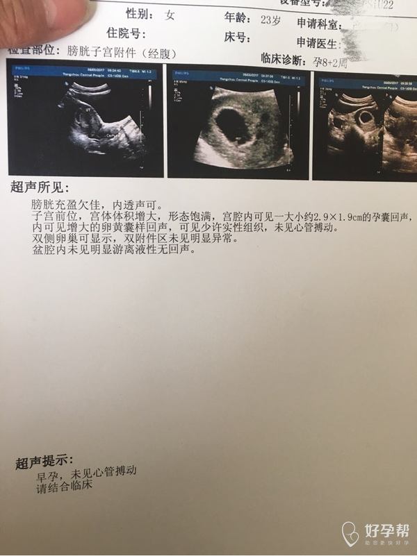 月经周期正常吗 ?如果月经周期正常,停经45天左右就可以看到胎芽及胎心,建议顺其自然,不要盲目保胎 。