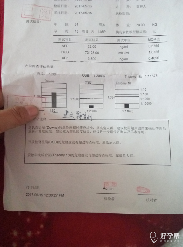 12+3时做的B超,NT0.09,今天去做了唐筛,检查结果如下,医生直接建议做羊水穿刺,可是我朋友都告诉我羊穿有风险,我该怎么办?我怀这个宝宝好难好难!!!