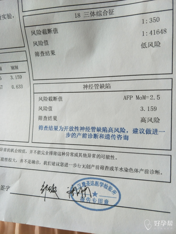 唐氏筛查结果出来了,有一项高风险