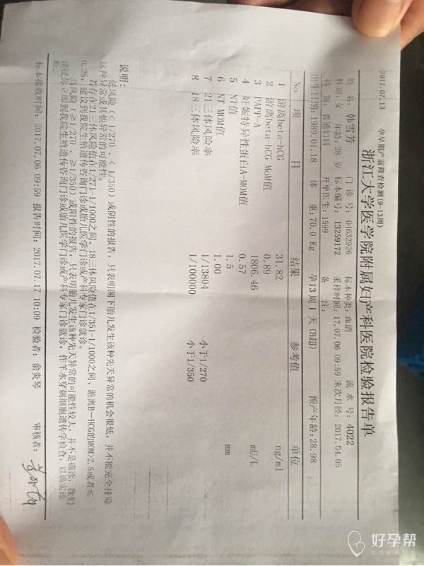 您好,医生,这是我孕13周,早起筛前检查的结果,取完报告,医生下班了!没来得及给医生看,请在线的医生帮我看看,正常吗?检查结果好吗?还有一个问题麻烦问问医生,建卡的最佳时间是什么时候,我到现在已经孕14周了,还没去建卡呢!建小卡跟建大卡是啥意思?我不懂!请知道的医生,或有经验的姐妹告诉我!万分感谢!