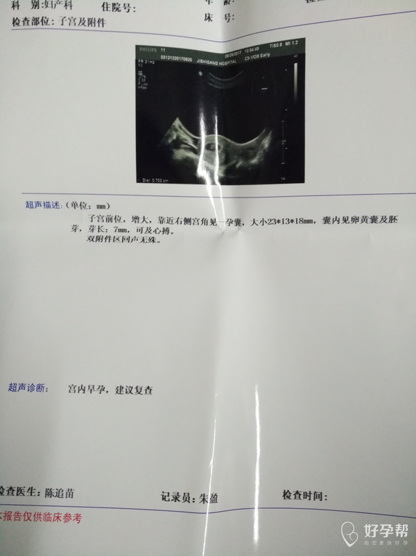 今天昨天b超检查胎芽什么都没问题