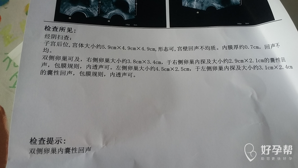 平时月经规律,27天左右,这月心情不好,因为我妈妈来住宿,婆婆向外撵我妈和婆婆,老公生了很大的气。这月20天就来月经了,量多。月经后检查如下。我们大夫建议下次去造影。请问我这是卵巢囊肿吗?