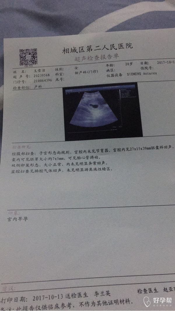 月经周期正常吗 ?如果月经周期正常,停经45天左右就可以看到胎芽及胎心,建议顺其自然,不要盲目保胎 。