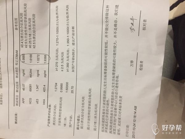 唐氏筛查报告 请医生帮忙看看有无问题