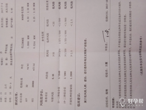 唐氏筛查这个结果是低风险的,发生唐氏儿的几率很低,结果算正常的