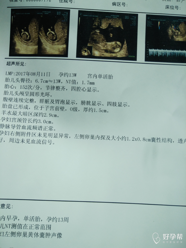 NT正常 卵巢小囊肿考虑生理性囊肿,不用处理