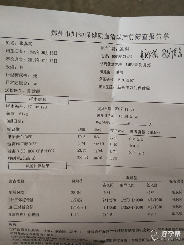 你好!都是低风险,后期定期产检,好运!记得点击采纳!