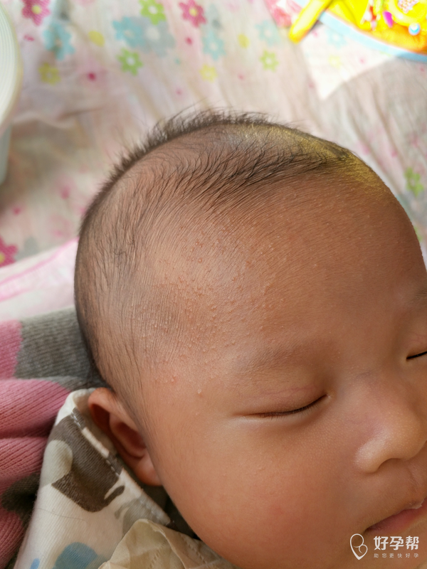 您好,这个是湿疹反应,等宝宝大些,六个月后会慢慢的好转,注意卫生多清洗,尽量不要太热。