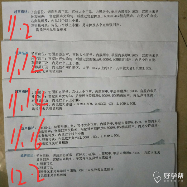 今天12月2号是来月经第二天,上个月三个优势卵泡很好的排了没怀孕,医生都说好可惜,这次继续加油,还有我今天去医院检查了阴超单子上面没显示多囊12个以上的这个了,是不是多囊没了,然后还有0.4MX*0.6MX的也没有了,前一个月的和今天的阴超对比一下,是不是来月经的医院检查不到还是多囊真的没有了,真的没有多囊了就好高兴,我中医药一起调理了一个月的多囊,