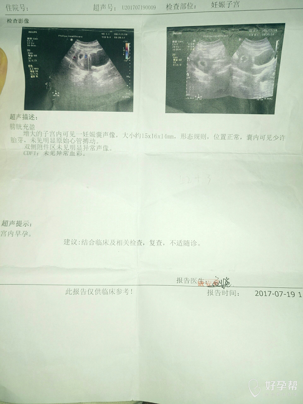 月经周期正常吗 ?如果月经周期正常,停经45天左右就可以看到胎芽及胎心,建议顺其自然,不要盲目保胎 。