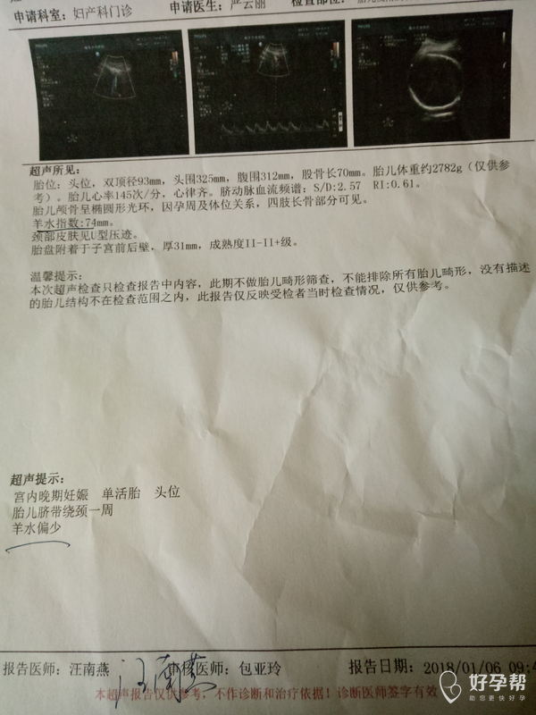 羊水偏少,胎盘趋向老化,建议住院观察复查,已经足月了,必要时终止妊娠。