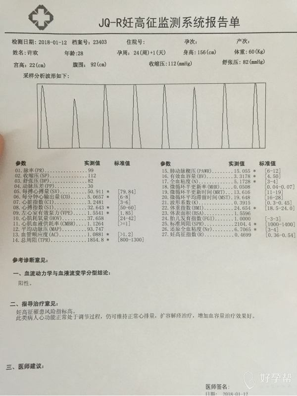 妊高征监测系统报告单显示阳性,求助医生!!!