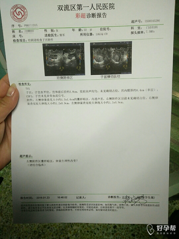 你好!左侧卵巢有1.3*19大小卵泡,已接近成熟,现在已经排卵了,如果这期间有同房,今天再同房一次,好孕可能性很大的,可于10天后抽血检测一下HCG确诊是否已经怀孕!另外你有多囊卵巢情况,如果此次好孕失败,可于月经来潮第三天空腹抽血检测性激素六项确诊多囊情况,对症治疗,放松心情好孕!如果回答有帮助请点击一下采纳!