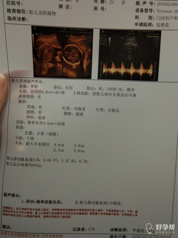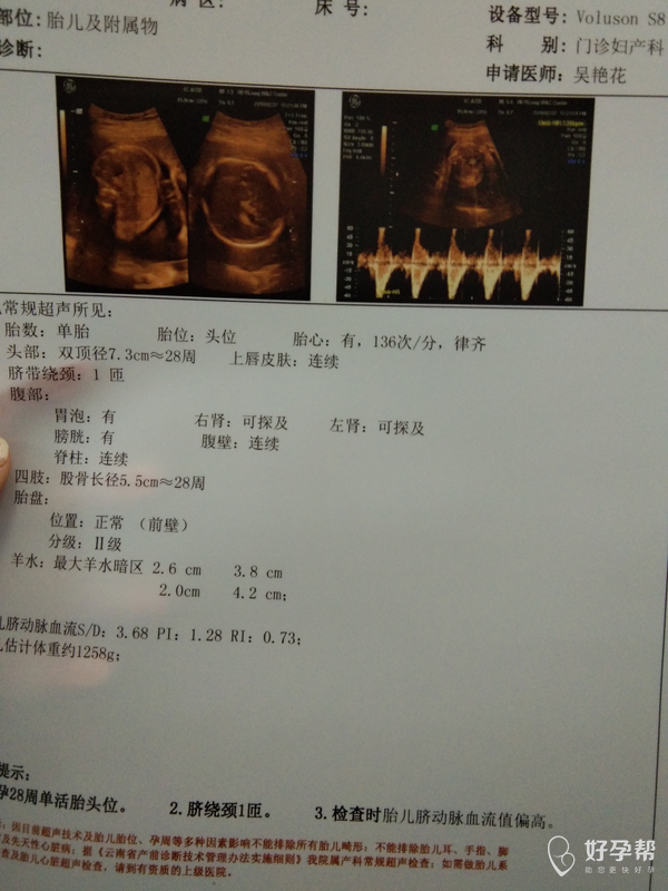 您好,你的脐血流指数是偏高,经过吸氧后有所好转,S/D要小于3是正常的。