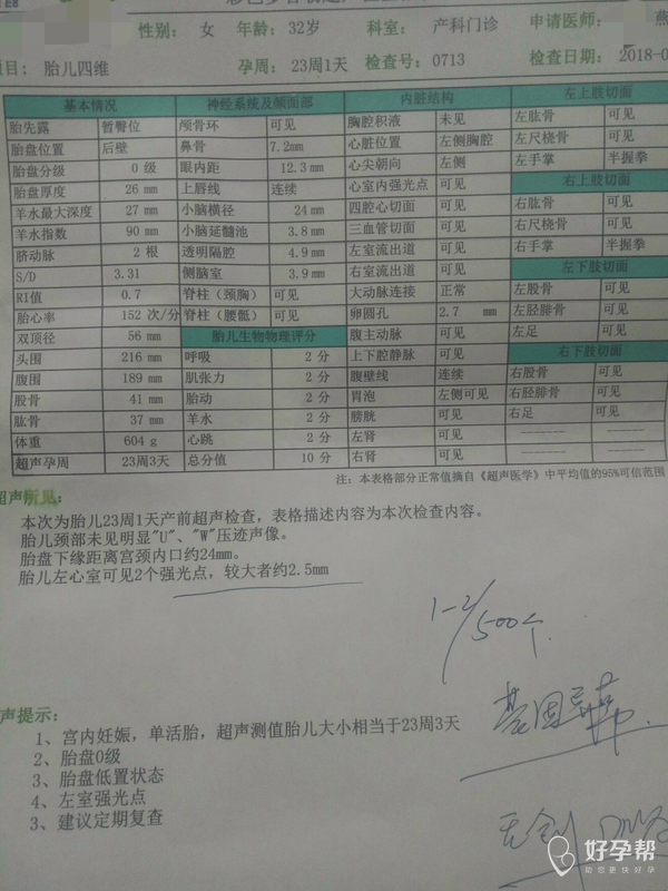 23周四维检查☞左室强光点!要不要紧呀!