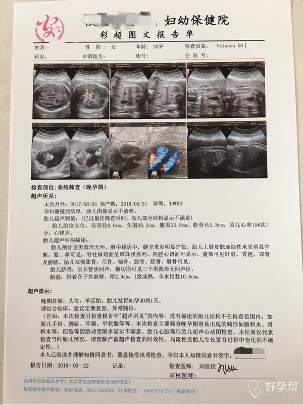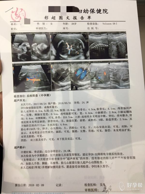 孕中期和孕晚期的大排畸检查,请医生帮我看看,上面是24周➕1做的,下面是30周做的。