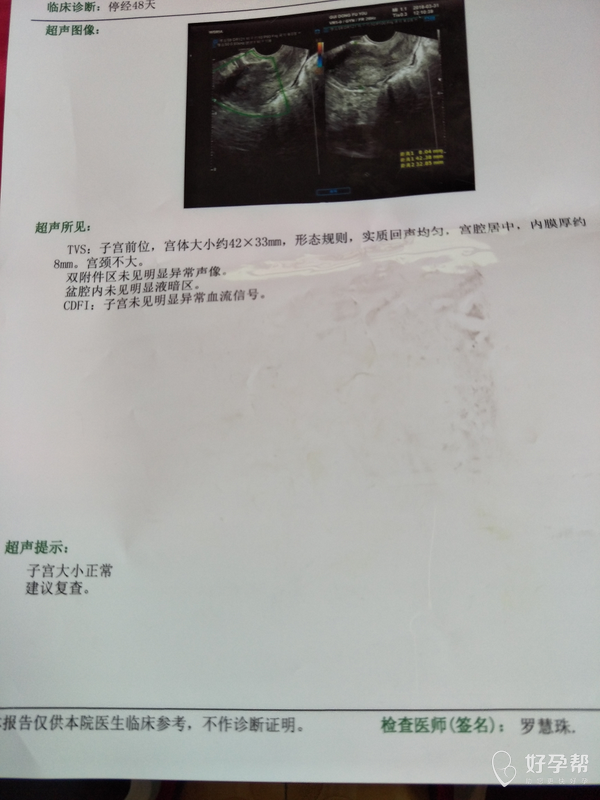 月经推迟19天,今天去做的彩超
