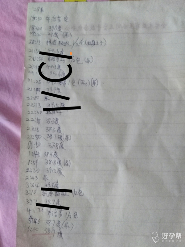28日发烧厉害(严重的时候40.3度,孩子浑身没劲,热,脸红),我物理降温(温热毛巾敷额头)一整夜,喂他吃的布洛芬(规格2g)半包