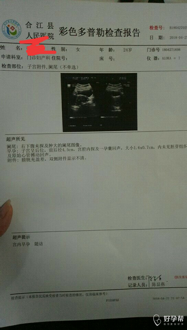 医生我4/27开始流咖啡色液体,去医院照了B超,4/29号中午又开始流了,4/21-4/27号打的黄体酮针剂,从28号起吃的黄体酮药,一天两次,一次一粒,我特想要这宝宝,我该怎么办???如下是27号的B超单