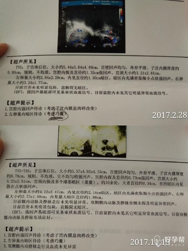 请医生帮我看看巧囊是变严重了吗?右下角有B超时间,2月和11月分别做的。