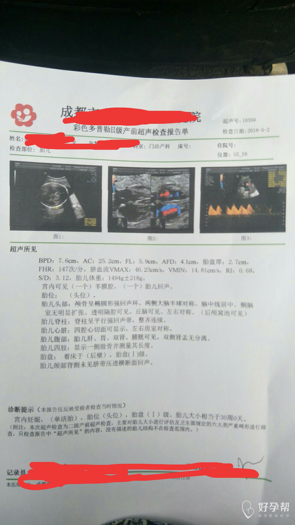 你好!B超报告正常,后期定期产检,好运!记得点击采纳奥!