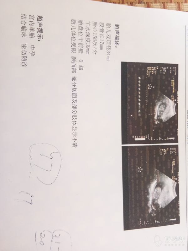 您好,17周这个宝宝是有点小,和实际的孕周相差两周,怀孕早期B超如何?