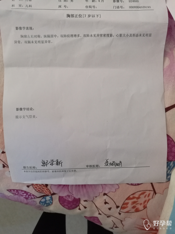 你好,报告提示有支气管炎,建议到儿科诊治