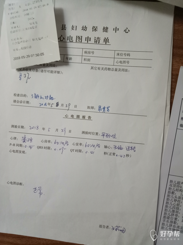 各位医生帮忙看看昨天的B超单.心电图,羊水少,胎盘老化