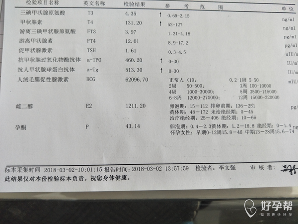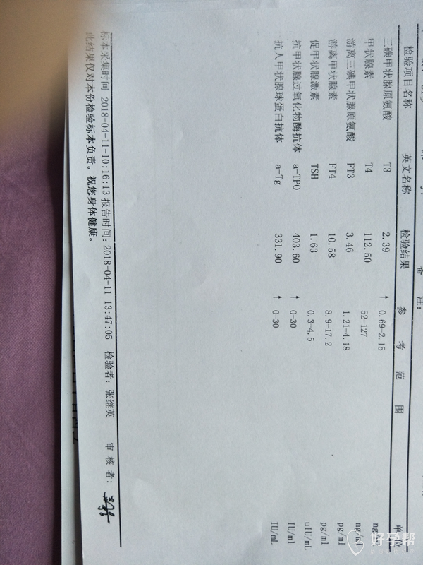 第一张是怀孕7周的时候检查的,医生说前两项甲功可能是因为我孕反应引起的升高,没让我吃药,让我复查,前三个月的确孕反应大