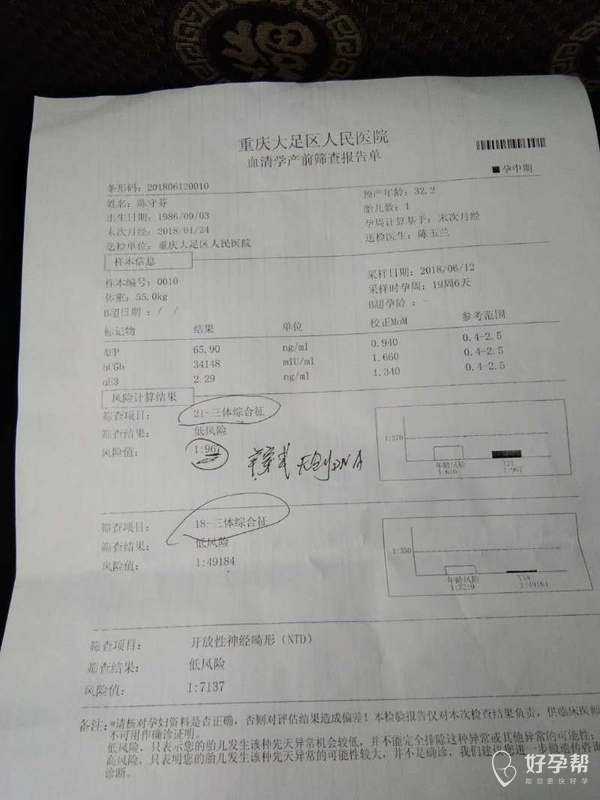 看看我唐筛是怎么的,为什么要做羊水穿刺