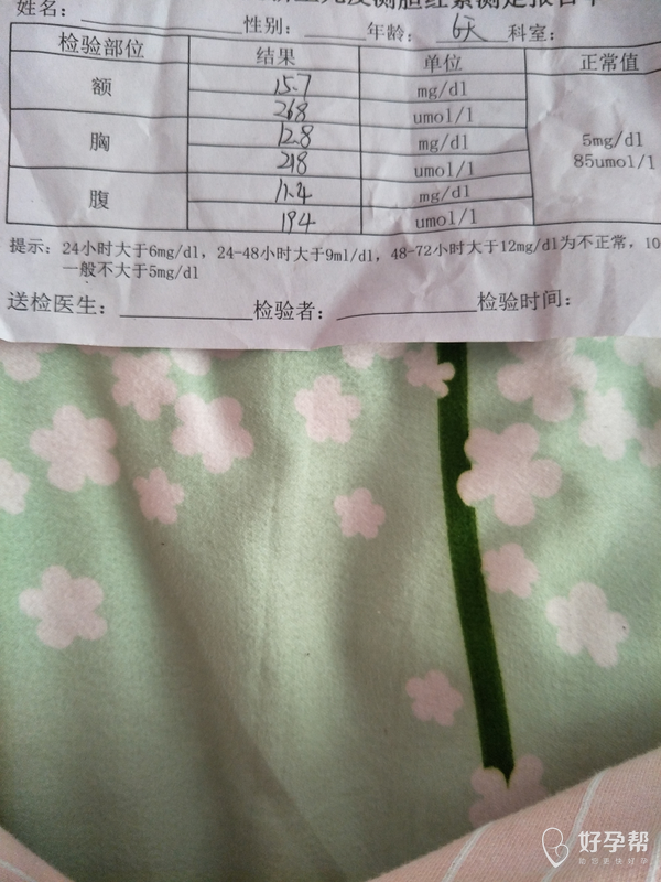 医生帮忙看看新生儿黄疸值,看看宝宝脸黄吗