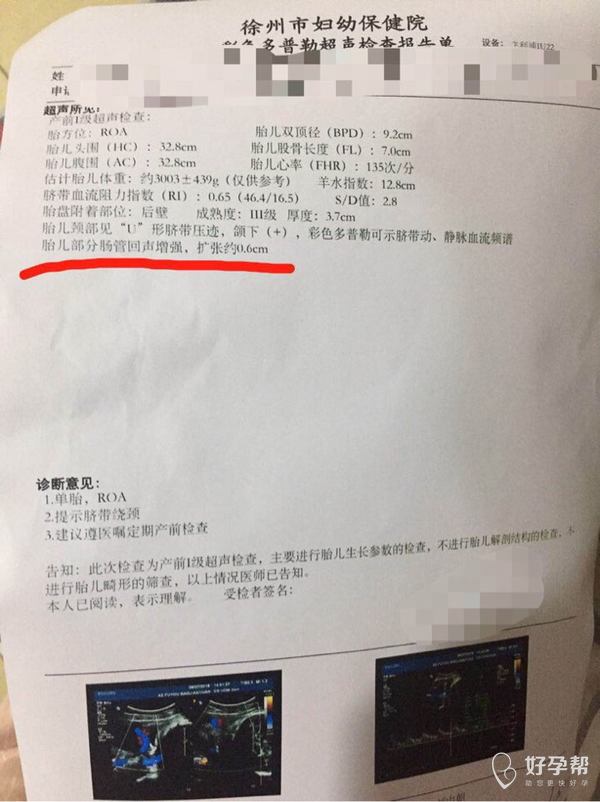 36周+2 B超正常,孕37+6B超 胎儿部分肠管回声增强,扩张约0.6cm,什么原因导致的?