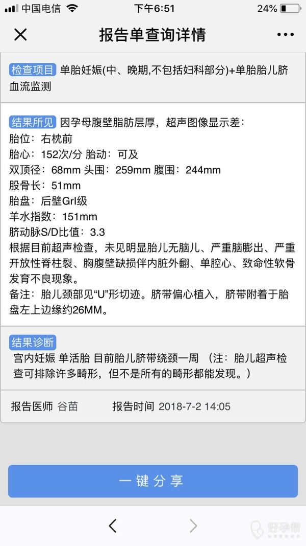 你好,超声检查宝宝发育很好,脐带绕颈一周一般不会有问题,需要你平时注意宝宝胎动,定期产检,也许后期宝宝在活动中自己就绕出来了,注意补充营养,可以适当走动,祝顺利生下健康宝宝😊