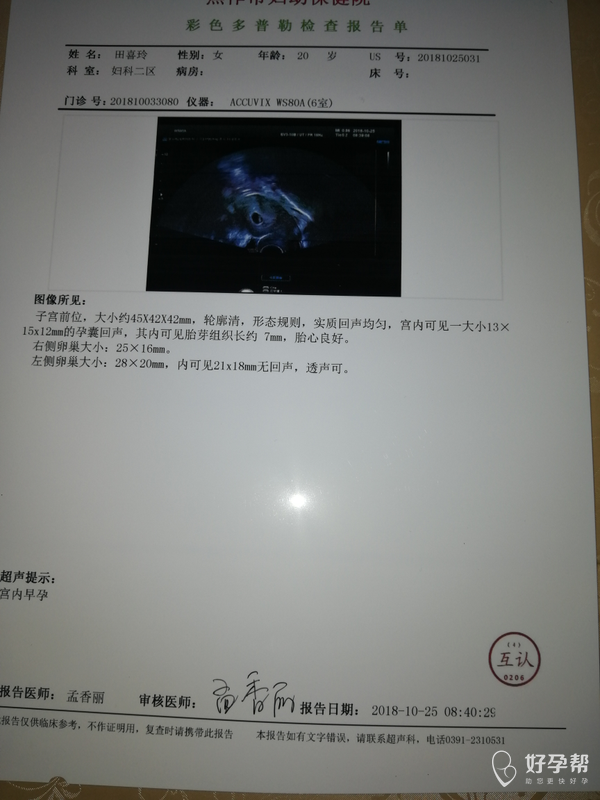 月经周期正常吗 ?如果月经周期正常,停经45天左右就可以看到胎芽及胎心,建议顺其自然,不要盲目保胎 。