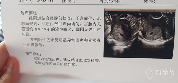 11月9日去复查 HCG7190 孕酮9.38 报告出来以后医生让我去做了阴超 请问阴超这个报告是正常的吗?