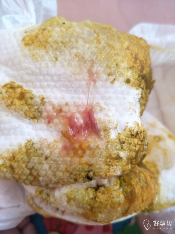 麻烦医生看看 这血丝是咋回事 宝宝最近感冒流鼻涕 我给宝宝吃了三天小儿氨酚黄那敏颗粒 除了正常吃母乳就吃一顿米粉 昨晚尿不湿上有一点花生粒大小的血丝 今早大小又有点血丝 请问这是怎么回事 孩子吃睡精神都正常