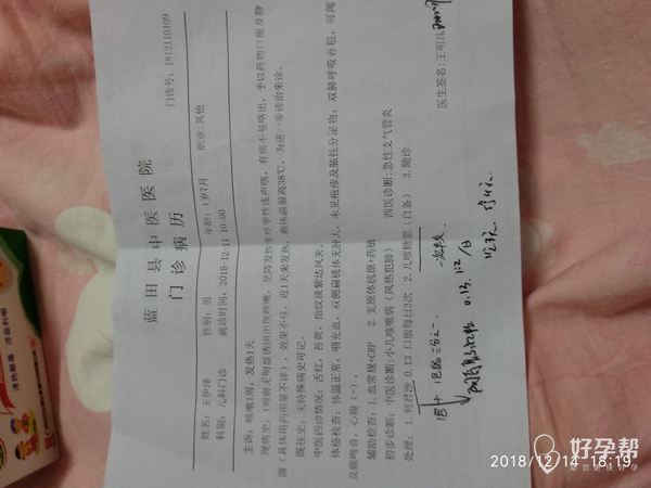 12月4号宝宝检查出得了 急性肠胃炎 和 急性支气管炎,后来打了五天吊瓶,其中每天做两次雾化,停止打针后,宝宝改为吃药,吃的药是护彤(小儿氨酚黄那敏),儿咳糖浆,头孢地尼,羧甲司坦颗粒,一直未见好。