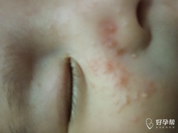 您好,应该是脓疱疹,中医称为热疮.是一种由疱疹病毒所致的病毒性皮肤病.一般会自愈的,别担心。 建议:1.保持皮肤清洁.每天洗澡.炎热天气可以每天洗2—3次.衣着要适宜.不要出汗过多. 2.保护皮肤不受损伤.衣服、和被褥要柔软.勤剪指甲.以免抓伤表皮. 3.避免与皮肤感染病的人接触.要勤洗手.4.不能捂得太热,开窗通风消毒,不排除存在过度保暖引起的可能,保持室内温湿度,湿度保持在55-60%,温度保持在22-24°最适宜。5.妈妈要注意饮食,以清淡为主,多吃高维生素高蛋白的食物,不能吃辛辣刺激性的及海鲜类食物。6.可以外用百多邦软膏,口服消炎药物预防感染,头孢克肟颗粒等。7.给宝宝补充维生素AD,多晒太阳,有利于钙的吸收。祝宝宝早日康复!觉着我的回复对您有帮助,记着帮忙点击采纳,谢谢!