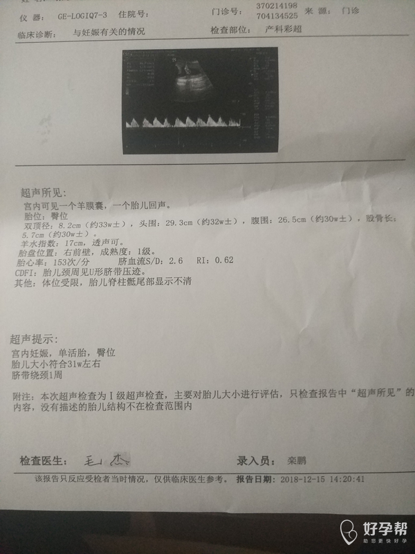 你好,宝宝挺好的,就是臀位,脐带绕颈一周不用管,没事的放心吧。
