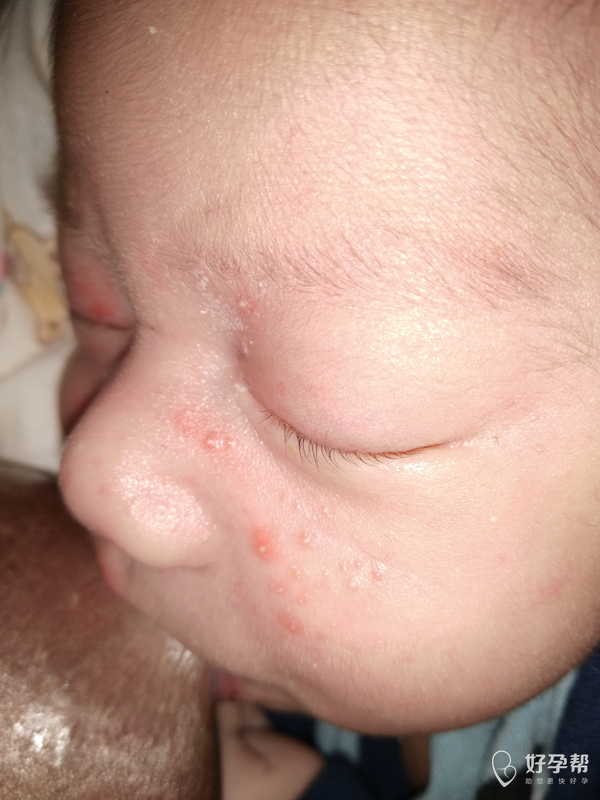 孩子前几天只有脸上有,现在头上,耳朵上,身上都是。孩子一直哭,从昨天下午开始都没好好睡,睡一会就醒,哭,吃了还哭,我都崩溃了。也不知道是不是湿疹,还是别的啥,我就怕是水痘
