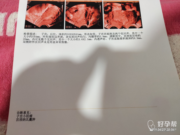 您好,两月未来月经,去检查子宫后位,体积约55×50×41mm,形态如常,内膜厚约5.9mm,宫颈前后径约20mm,另外还有小肌瘤,图片在下面,我想问问,子宫的体积,厚度,前后径正常吗?小肌瘤会是不来例假的原因吗?