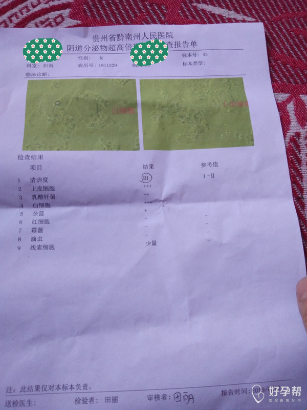 你好,宝妈。根据你的描述具体建议如下:1 阴道分泌物检查报告显示是炎症,轻微炎症,细菌性阴道炎。红核妇洁洗液以及硝呋太尔孕妇可以用的。这是不影响宝宝以及宝妈的健康。同时有阴道炎是会刺激出血。所以尽快即早用药治疗就可以。平时注意饮食营养均衡搭配,忌食生冷油腻辛辣刺激之品。注意卫生,勤换内裤,太阳下晒内衣裤。2 彩超检查羊水正常,正常量3--7cm。脐绕颈一圈这是与宝宝活动度,脐带长度等等因素均有关系,孕期常见的现象,不要太担心 之后动态观察就可以,可能会绕出来,也可能还这样,只要定期就好。3 近期注意不要负重劳累,夫妻不要同房,保持大便通畅 注意之后16--20周之间中期唐筛哦。24周左右四维彩超检查大排畸哦。4 定期产检,祝你好孕。如果我的建议对您有帮助,请记得选择点击采纳。