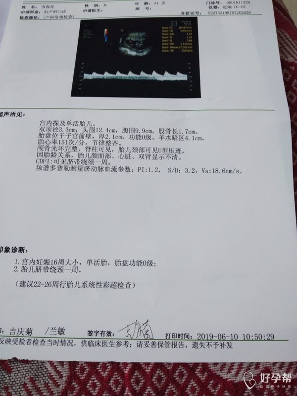 还有我的羊水正常吗?B超单上宝宝偏大几天今天16周了,脐带绕颈一周正常吗?