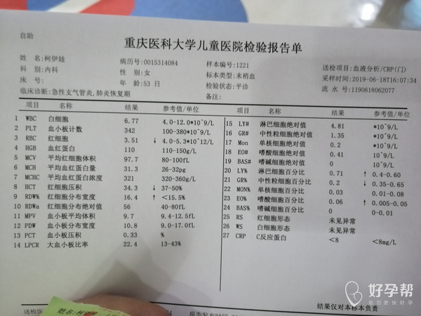 q前天去医院彩超,她是胃食管反流,医生说自己长长就好了。昨天查血,医生说是急性支气管炎,肺炎没好,开了些感冒药。