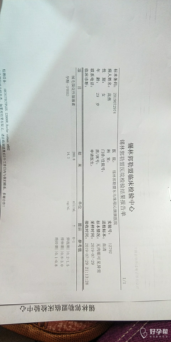怀孕5周hcg280 孕酮14.3