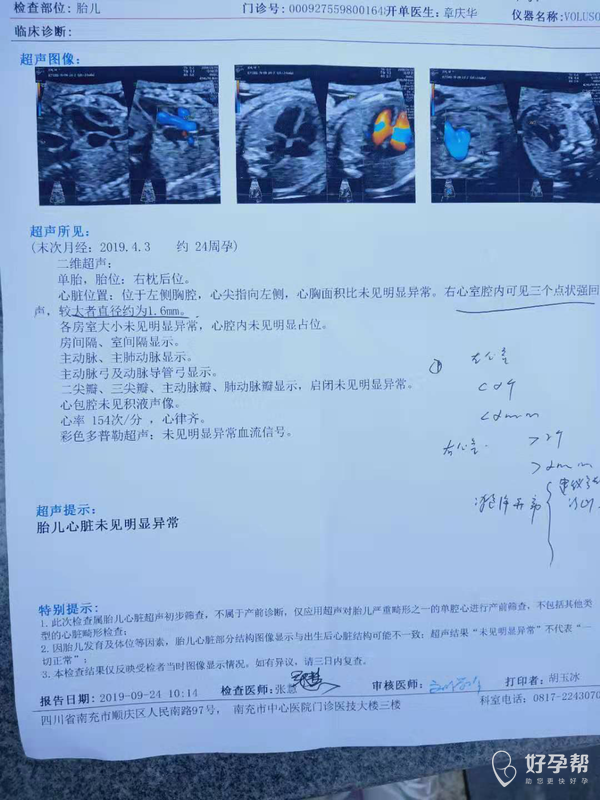 请医生帮我姐姐的宝宝看一哈心脏彩超的报告!