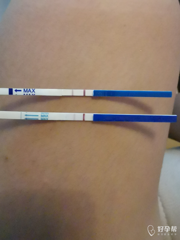 从你的月经周期推算,如果测出来这样应该是怀孕了。可以过几天再用晨尿复测,正常情况下第2道线应该会更深。