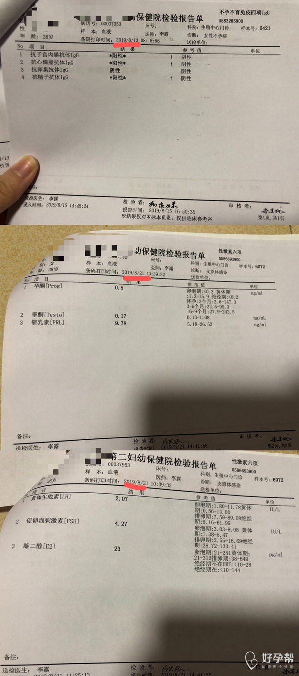 2019年中旬开始备孕,检查后是免疫四项有阳性,经过一年多西医+中医调理。2021年1月复查有两项已经转阴了,但调理期间一直在备孕也都没有怀上,检查了输卵管和彩超也都正常。先生的精液报告也是正常的。