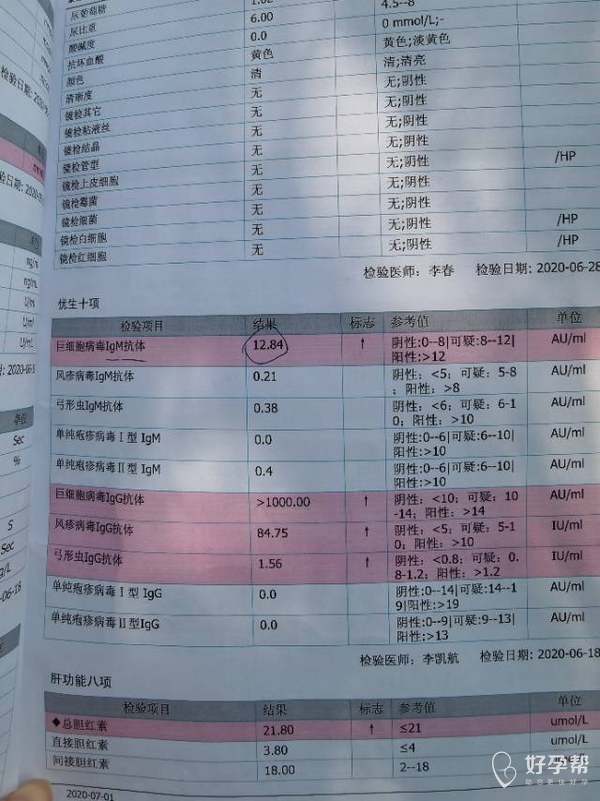 请问巨细胞19年igm阳性igg105620